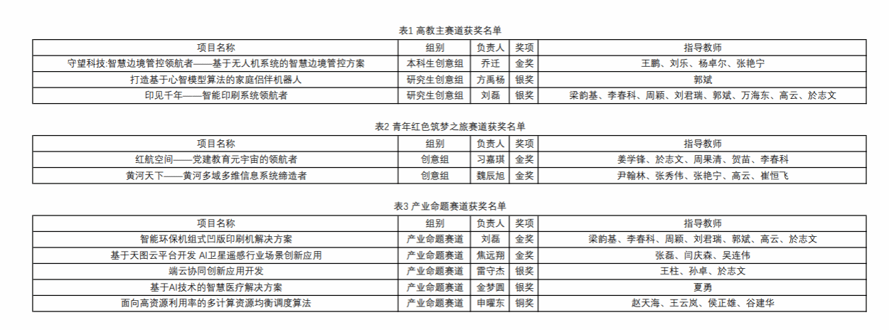 的多支队伍在大赛中取得优异成绩,在高教主赛道、青年红色筑梦之旅赛道和产业命题赛道共斩获金奖5项,银奖4项,铜奖1项。