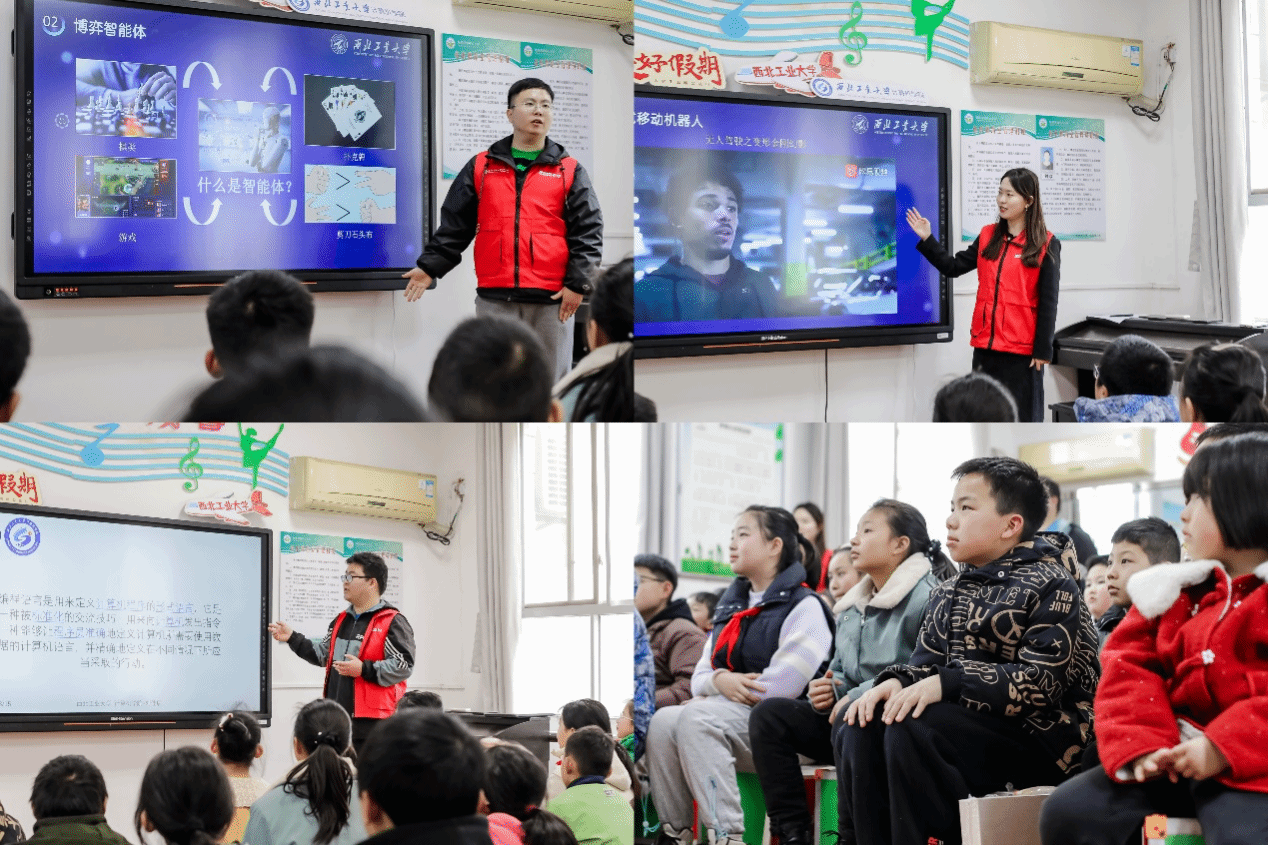 学生“拾梦开源”志愿服务队和10012102团支部、研十一党支部的志愿者们精心为孩子们准备了一堂AI编程互动及智能体探秘科普课程。志愿者们用通俗易懂的语言和丰富的视频动画科普计算机AI领域相关知识,一行行代码仿佛充满了魔力,使学生感受到了编程的无限魅力,各类智能体的科技本领也让孩子们大开眼界,短短40分钟的课程不仅为孩子们传授了丰富的知识,也在他们心中播下了对计算机AI科技的向往之种。
