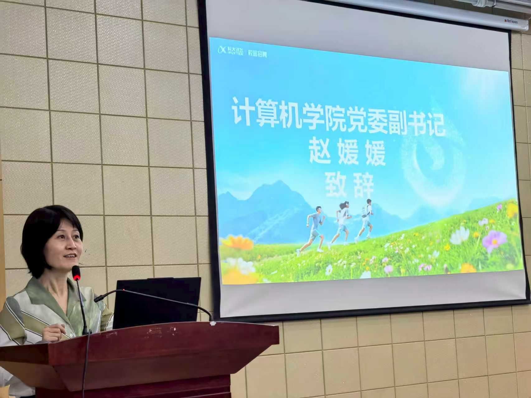 赵媛媛在致辞中对科大讯飞一行的到来表示了热烈欢迎。希望同学们夯实专业基础,将今天的所学所感,内化为明日的学术追求与职业梦想。