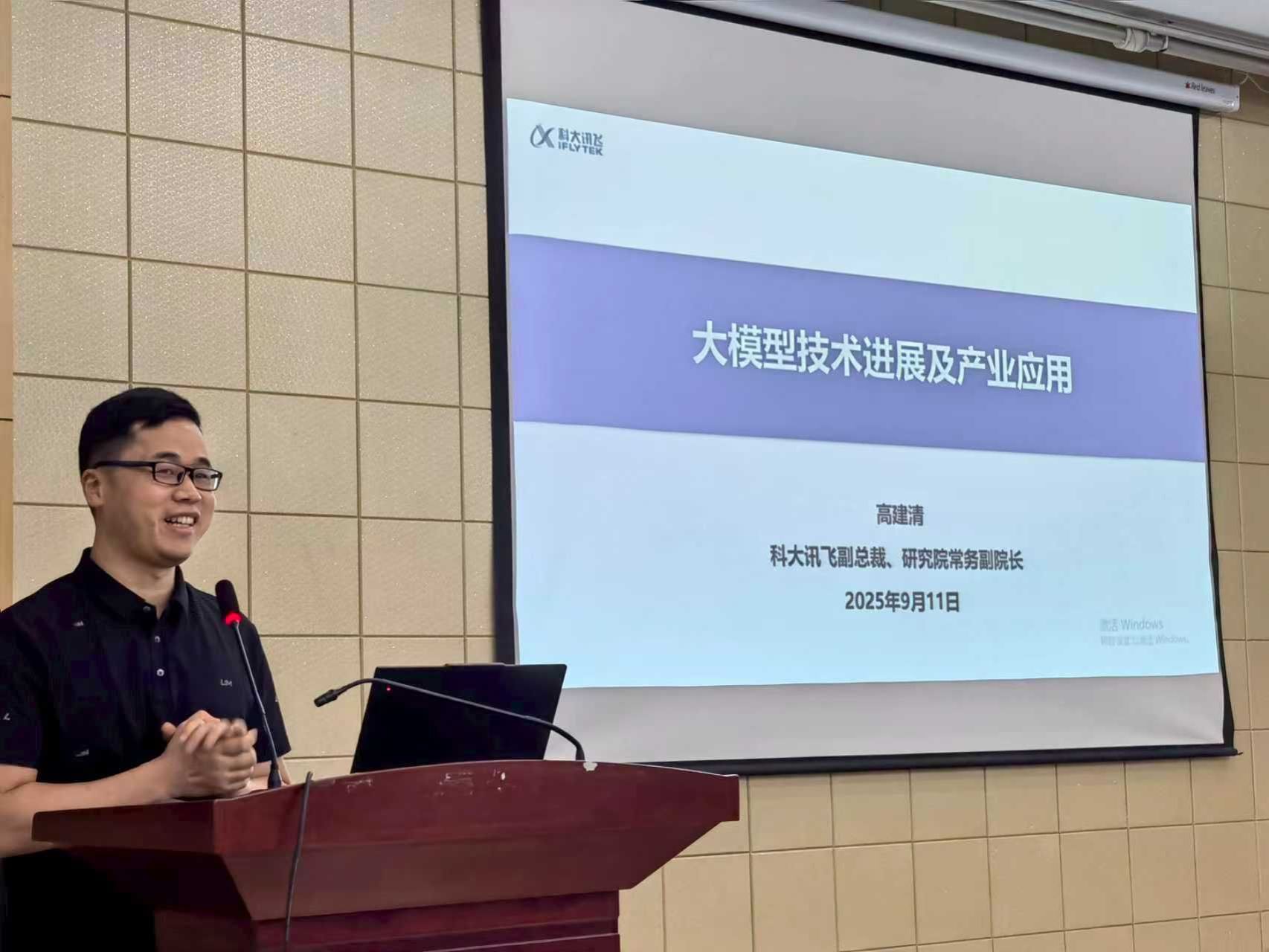 举办人工智能专题讲座暨就业宣讲会,邀请科大讯飞副总裁、研究院常务副院长高建清做客翱翔灵犀学术殿堂,为学校师生作题为《大模型技术进展及产业应用》的专题报告。计算机学院党委副书记赵媛媛、学工主管刘百芳、学工秘书曹香及200余名学生参加。