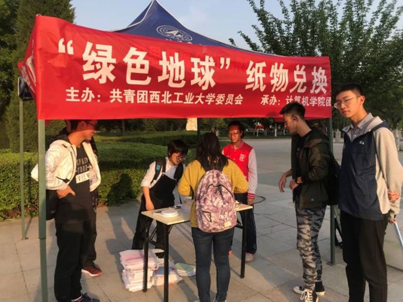 绿色地球是以废纸兑换练习本、考试训练题等,旨在宣传环保公益的志愿服务活动。活动一开展,便得到各院学生的大力支持。目前活动第四届第1期已经举办完,截止现在,已累计回收废纸超过500公斤。