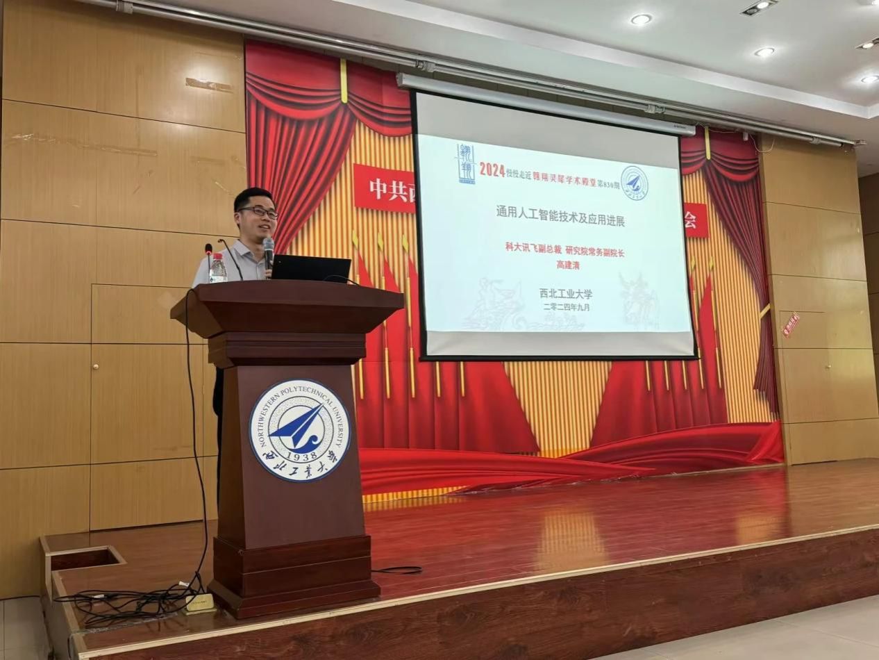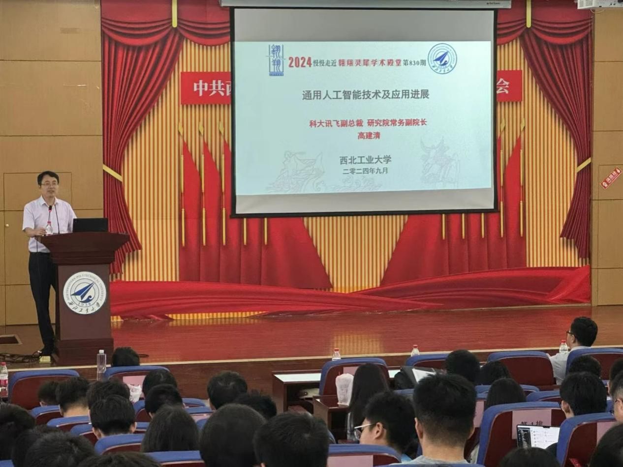 翱翔灵犀学术殿堂,同时向在场师生介绍了本次报告会的背景和目的,并对当前通用人工智能技术及应用进展进行了简要概述。