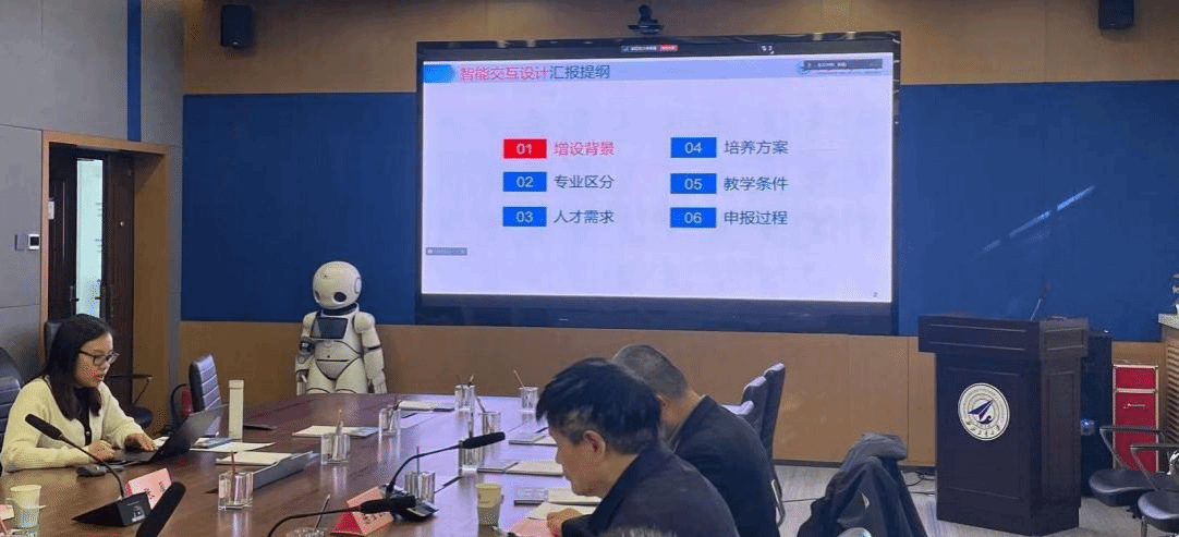 在报告环节,张盈教授详细汇报了智能交互设计专业的增设背景、专业定位、人才需求、培养方案、教学条件及申报过程。该专业旨在解决人机物融合时代下智能体、人与环境的多元协作共融问题,结合设计场景和对象特点,融合计算机科学、设计科学及人文社会科学,是一门多学科交叉融合的新兴专业,将有力推进新工科建设。在人才培养方案中,课程设置涵盖基础课程、专业课程和专业选修课程,充分体现了“智能交互 + 设计人文”的多学科交叉特性。教学条件方面,该专业拥有雄厚的师资力量,包括专业带头人郭斌教授和核心授课梁韵基等教师。目前,该专业的申报已获得教育部审批,相关工作正在逐步完善中。