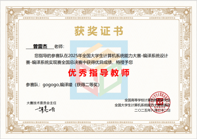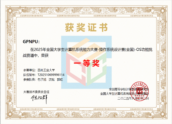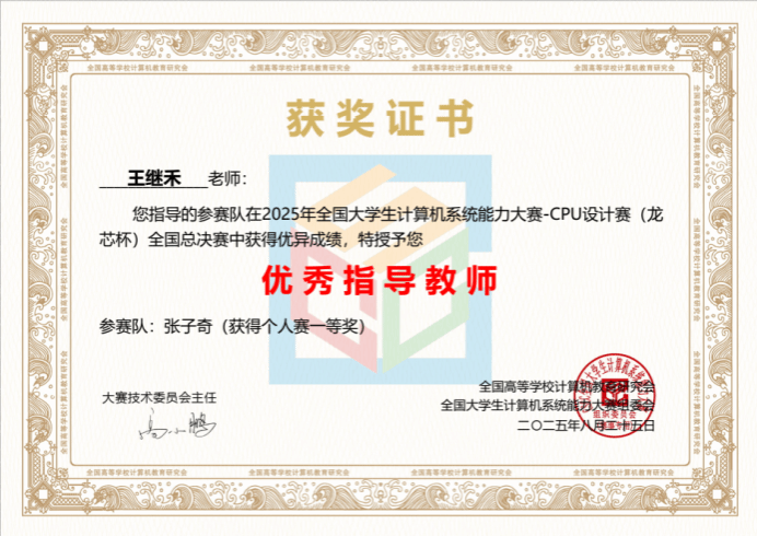 学子表现出色,在操作系统设计、CPU设计、编译系统设计及数据库管理系统设计四大赛道中,共获一等奖2项、二等奖5项、三等奖6项。