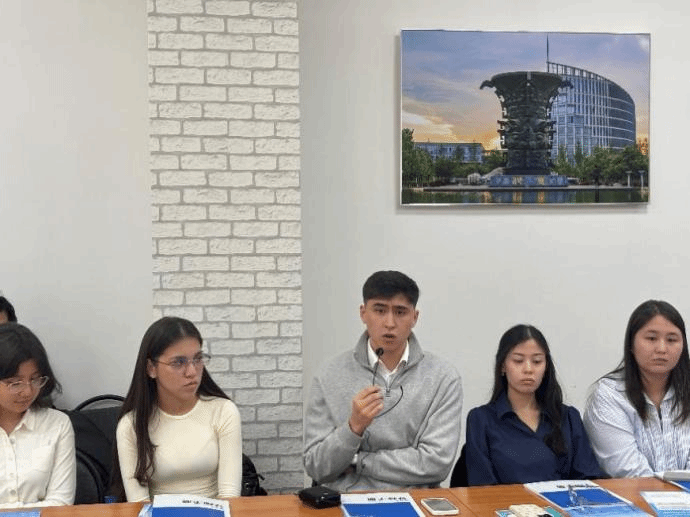 见面会上,本科新生代表Sergali Meruyert与硕士新生代表ZhumanovYernur分别发言。Sergali Meruyert 表示,选择双学位项目是为了扎实掌握学术知识、积累跨文化交流经验,期待两年后赴中国学习,并渴望了解中国文化,未来计划投身人工智能领域为社会进步贡献力量;ZhumanovYernur介绍他因项目能促进中哈交流、感受中国历史文化而选择加入,未来他希望在人工智能领域探索创新,成为连接中哈科技合作的纽带。