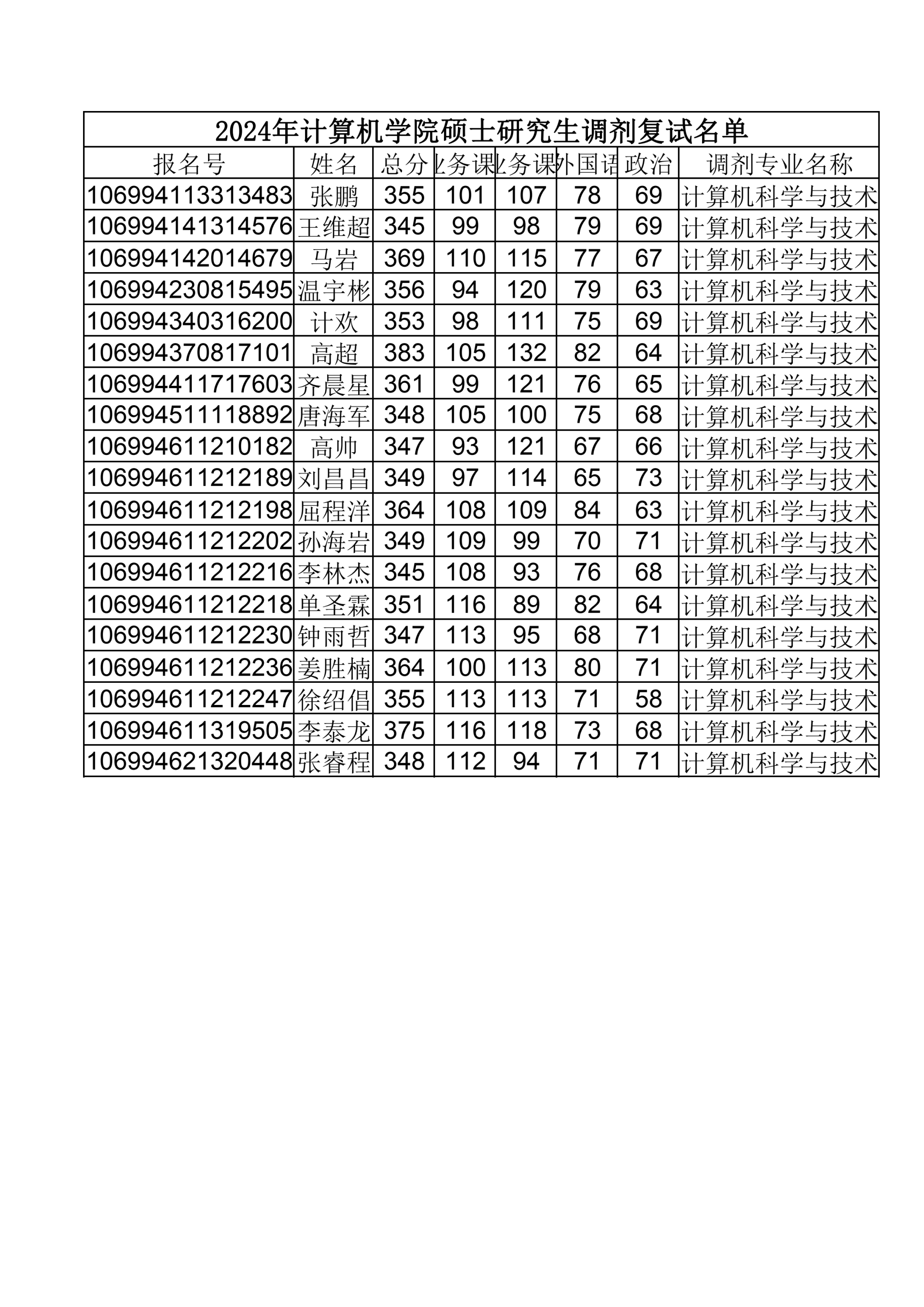 2024年成人视频 硕士研究生调剂复试名单
