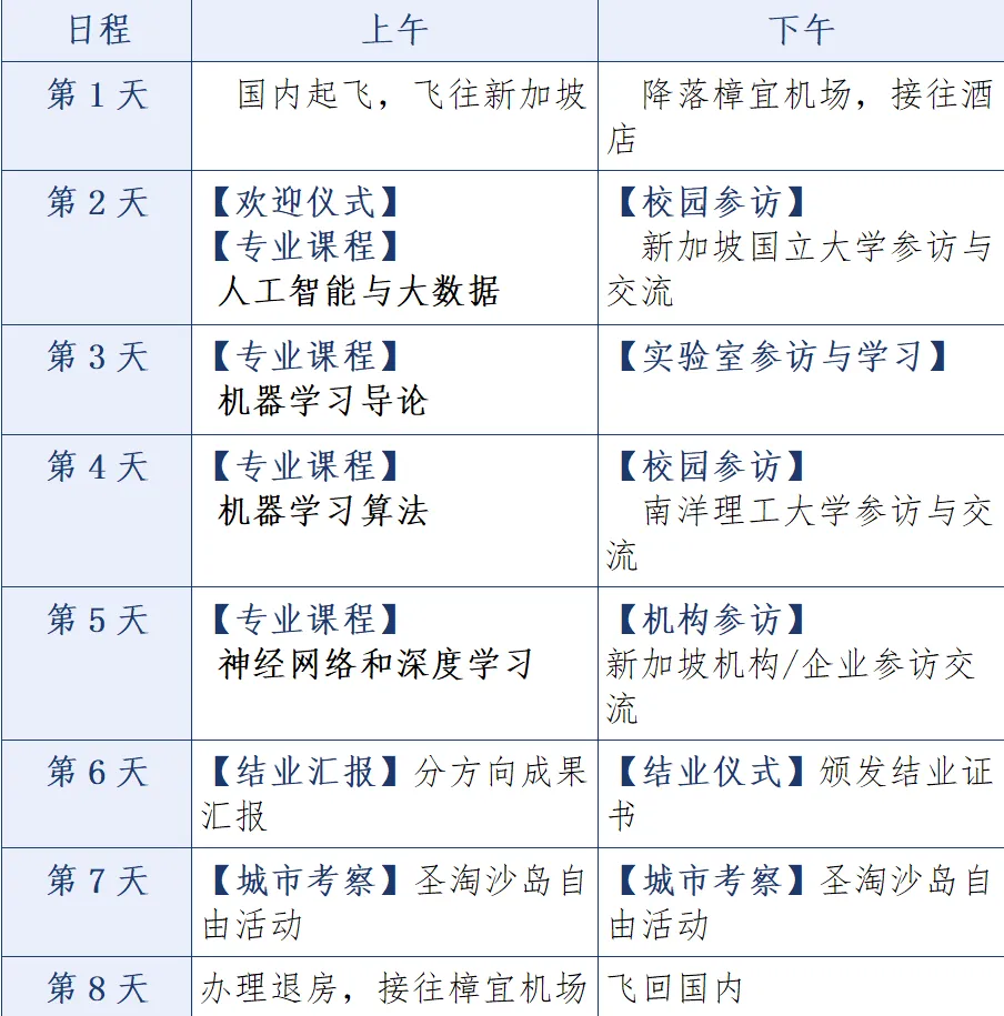 该项目涵盖了新加坡国立大学课程、学生交流、政企参访、人文考察、结业比赛等内容,最大程度地让学员在短时间内体验新加坡国立大学的学术特色、品味新加坡本土文化。