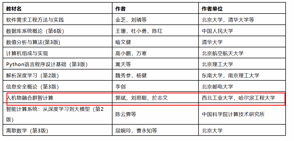 人机物融合智能计算团队郭斌教授、於志文教授、刘思聪副教授联合编著的《人机物融合群智计算》成功入选,成为计算机领域前沿教学成果的代表之一。